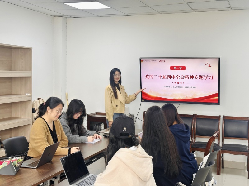 为深入学习贯彻党的二十届四中全会精神,进一步推动杏彩娱乐 团学工作有序开展。2025年10月31日,杏彩娱乐(中国)官方网站 团委在浦口校区B109召开专题例会传达学习党的二十届四中全会精神专题学习会。院团委全体委员、各年级团支书、研究生会执行主席、新媒体中心及各学生社团负责人齐聚一堂,共话学习体会,共谋发展新篇。会议由杏彩娱乐 团委负责人、学工办主任周素戎老师主持。
