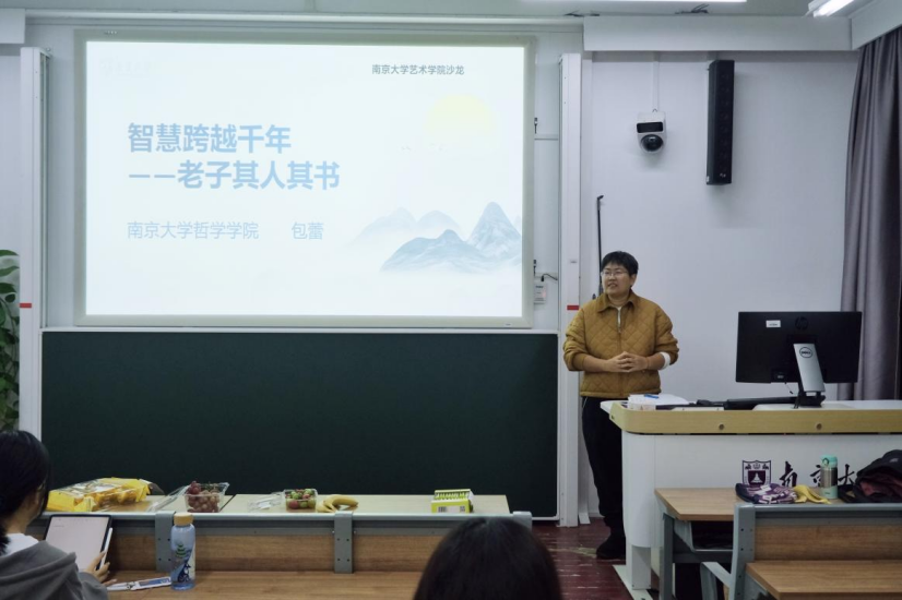 2025年10月22日,第十期艺术沙龙于南京大学浦口校区艺术楼浦1-223教室举办。本期沙龙邀请南京大学哲学杏彩娱乐 准聘助理教授包蕾和杏彩娱乐(中国)官方网站 助理教授、特聘研究员徐志君,与同学们共同探讨“智慧跨越千年——老子其人其书”。