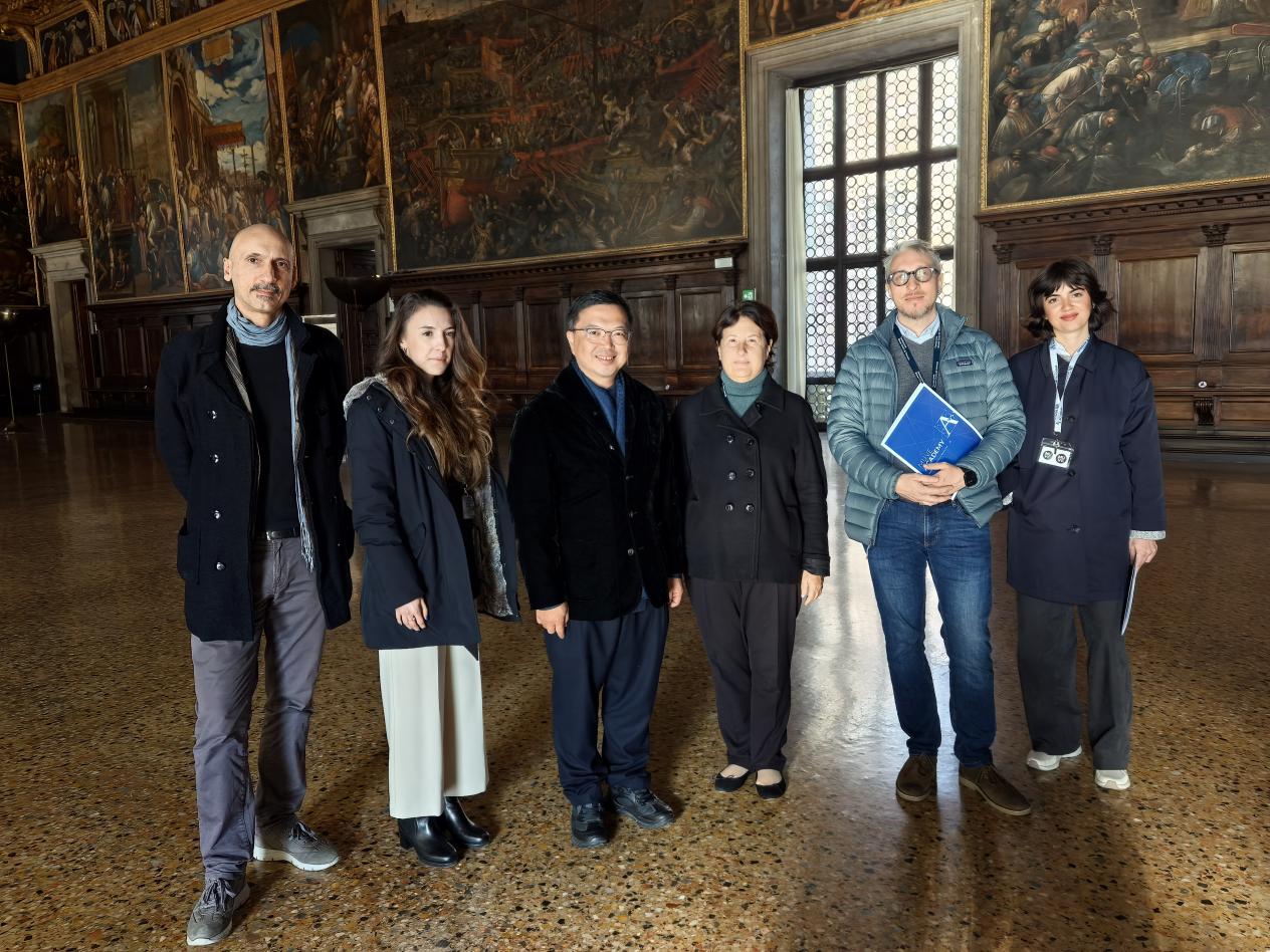 同日,尚荣副院长一行受邀赴威尼斯总督府大会议厅参观交流,与威尼斯市立博物馆馆长Chiara Squarcina、威尼斯博物馆基金会杏彩娱乐 负责人Pietroluigi Genovesi,以及基金会杏彩娱乐 文化教育与研究平台的负责人进行深入交流。该基金会管理包括总督府、科雷尔博物馆、佩萨罗现代艺术馆等11座重要文化机构。