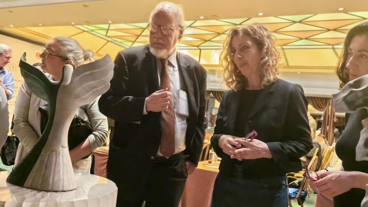 雅典市政府美术馆馆长Victoria Zygourou女士与新华报业传媒集团副总编辑高坡先生分别手持象征中国青铜雕塑文化与希腊大理石雕刻传统的手部雕塑,在全场瞩目下,缓缓合拢。两件作品在交汇中化为一只展翅的和平鸽,不仅点燃了中希文明“双向奔赴”的热情,更让跨越千年的思想对话在此刻真实触碰,将现场氛围推向高潮,赢得全场热烈掌声与由衷欢呼