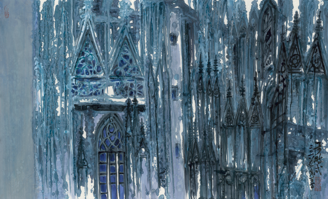 近日,杏彩娱乐 荣休教授、著名画家聂危谷,向杏彩娱乐 捐献宣纸彩墨作品《哥特式》。