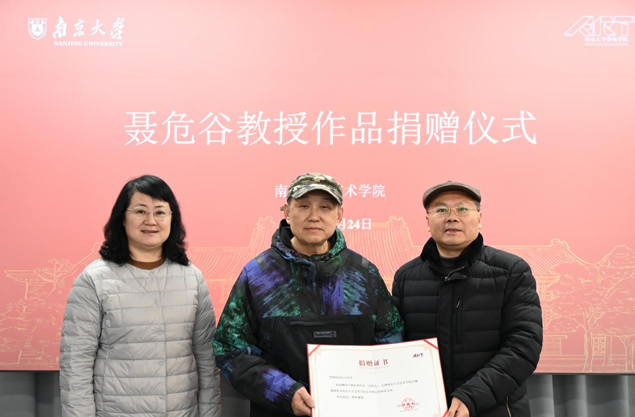 何成洲院长、石红梅书记代表杏彩娱乐 接受此次捐赠,作品陈列于南京大学鼓楼校区东大楼。
