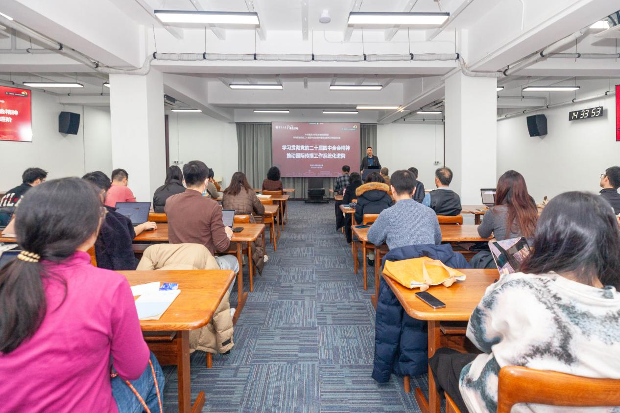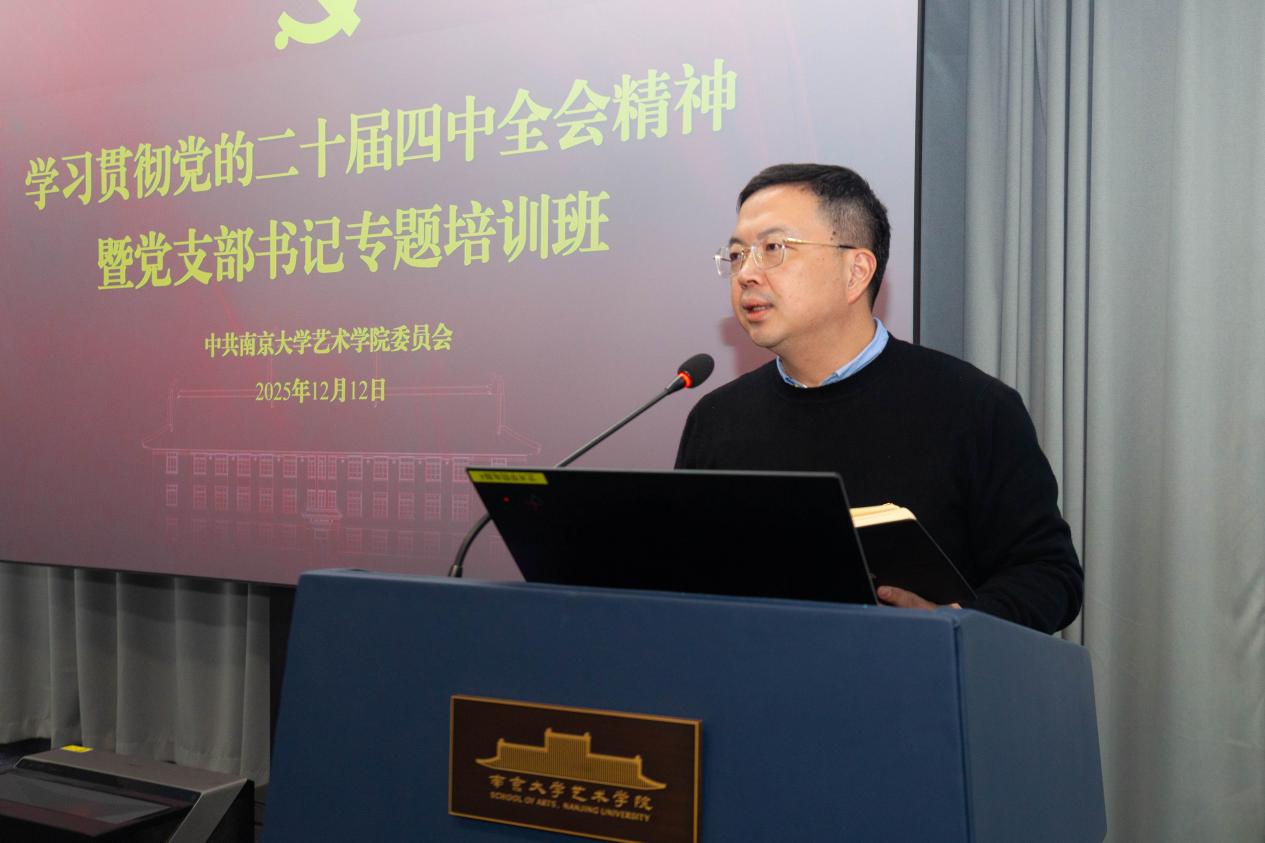 12月17日下午,南南京大学党委常委、党委宣传部部长、党委统战部部长闻羽为专题培训班学员主讲《学习贯彻党的二十届四中全会精神,推动国际传播工作系统化进阶》。他聚焦党的二十届四中全会与“十五五”规划的核心要求,深入阐释了国际传播在国家现代化进程中的战略意义。通过梳理习近平总书记对国际传播工作的重要论述和指示要求,他着重阐释了完善国际传播体制机制、创新国际传播载体和方式的重要性,并表示南京大学正积极响应“十五五”规划的要求,立足学科优势,在提升国际话语权、讲好中国故事、推动文明交流互鉴等领域主动作为。他重点分享了南京大学在国际传播活动中的实践探索与阶段性成果,通过丰富案例展现了南京大学国际传播工作的多维布局,介绍了学校国际传播工作的三大核心方向和三条应对策略,指导师生党员充分发挥学科优势,通过目标升华、渠道拓展、平台创新等举措,开展具有国际影响力的艺术理论研究和富于深切感染力的艺术创作实践,用学术力量、艺术表达、青春视角向世界讲好中国故事与南大故事,共同推进南京大学国际传播工作系统化进阶。