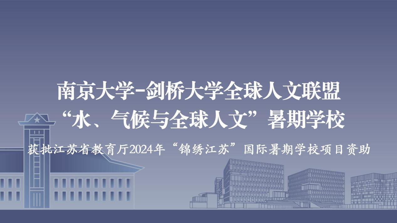 近日,南京大学-剑桥大学全球人文联盟“水、气候与全球人文”暑期学校获批江苏省教育厅2024年“锦绣江苏”国际暑期学校项目资助。2024年首届全球人文暑期学校将由南京大学全球人文研究院承办,剑桥大学全球人文联盟、杏彩娱乐(中国)官方网站 协办。