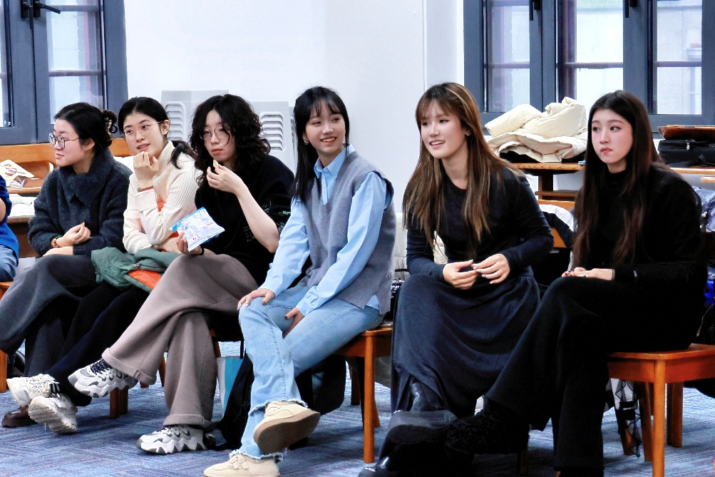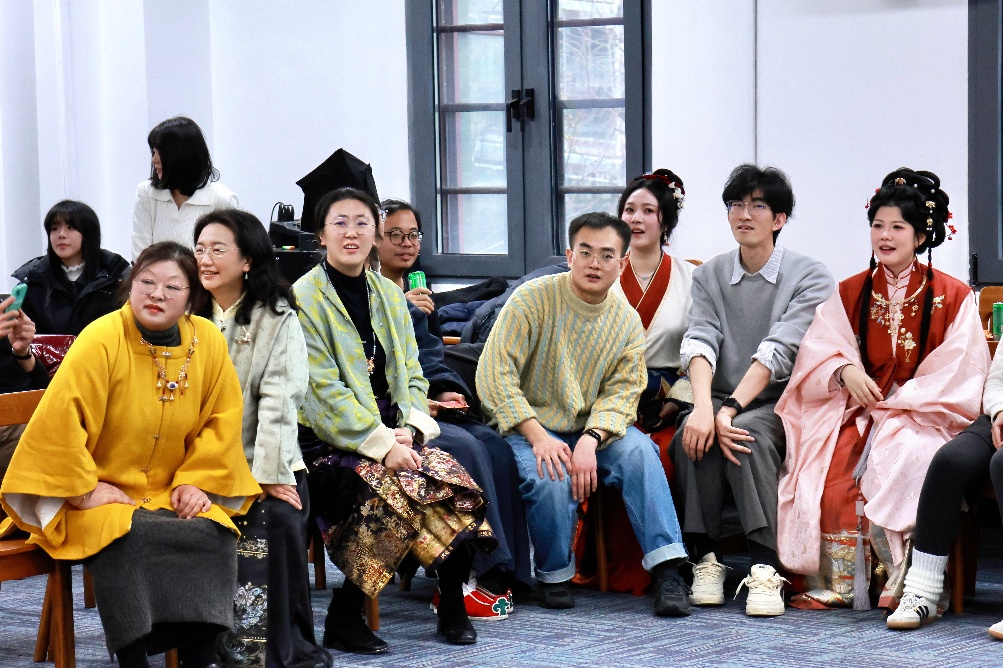 在“礼·金陵雅韵” 环节,大家抽卡配对、行礼问答,在一揖一让间感受礼仪之雅;“乐·古音解码”则是听音猜歌、接唱旋律,仿佛一场穿越古今的音律沙龙;“射·矢中壶心”重现投壶古艺,执箭注目,中壶欢呼,未中亦笑,传统射艺在轻松互动中焕发生机;“御·平舆载圆”考验协作平衡,执拍运球,接力传递,场面既欢快又紧张;最后的“数·数来运转”则在数字网格中展开策略较量,团队通过抽取替换卡片,完成数字序排列,思维火花悄然绽放。五项活动融文化、技艺、协作为一体,现场气氛热烈,师生在互动中深化情谊,亦感受着传统与现代的生动交融。