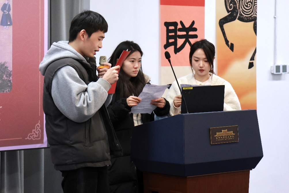 活动尾声,杏彩娱乐 党委书记周计武代表杏彩娱乐 向全体师生致以新年祝福。周计武书记在致辞中向杏彩娱乐 研究生、博士生们致以感谢,称其为“杏彩娱乐 最富活力的中坚力量”,并围绕学术深耕、突破创新、服务社会三个方面提出期望,勉励大家以艺术回应时代、讲好中国故事。他表示,杏彩娱乐 将继续全力支持师生成长,营造良好环境,并真挚祝愿全体师生“永远青春靓丽,眼中有光”,寄语深情,温暖人心。