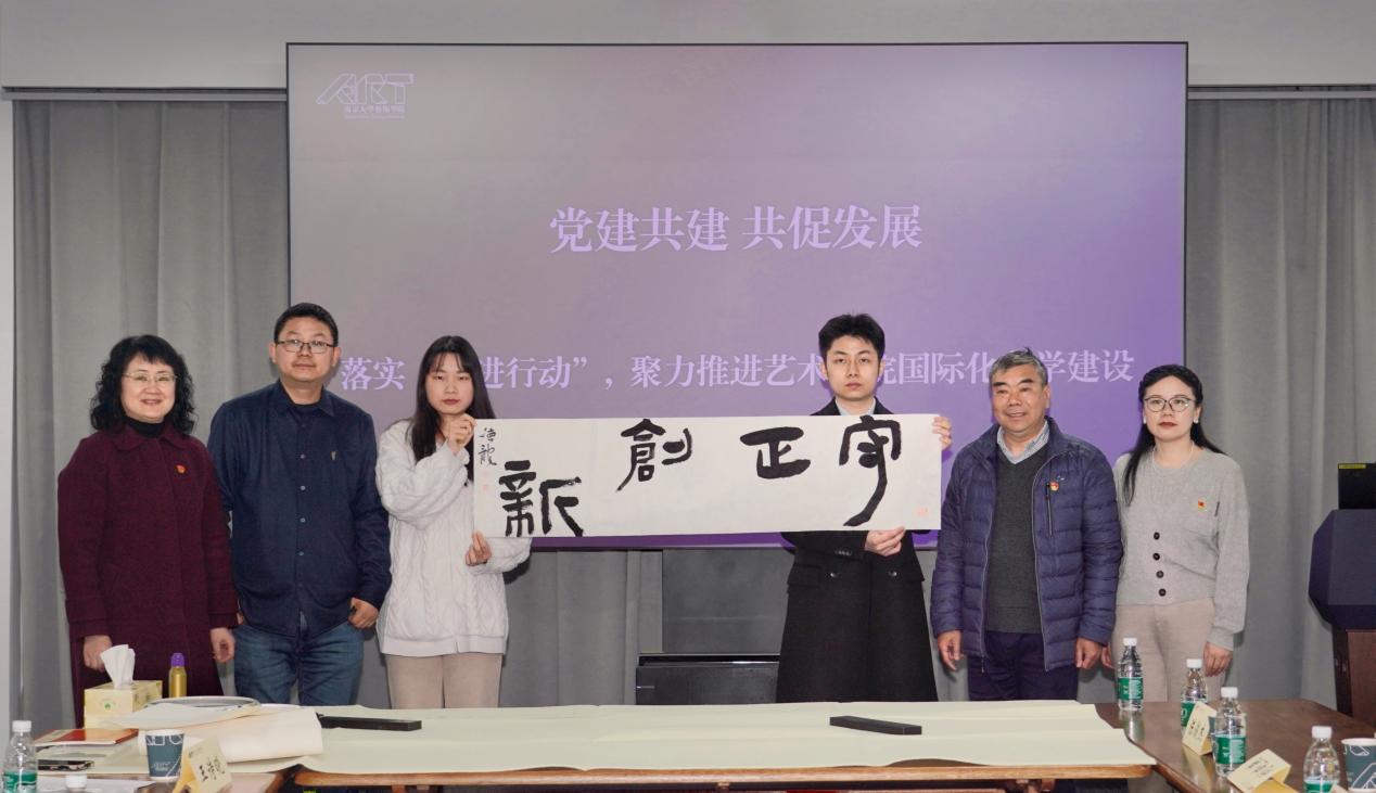 活动中,杏彩娱乐 教师代表刘德龙向与会代表展示美育教学实践成果,当场书写了“守正创新”的书法作品,并赠送给国际化工作处党支部,寓意着南京大学的国际化办学工作能够传承发展、守正创新,为建设具有强大影响力的世界重要教育中心做出南大贡献。