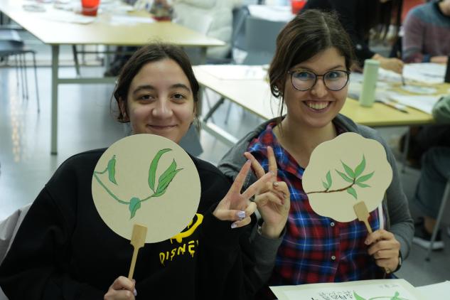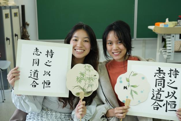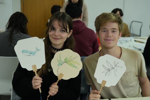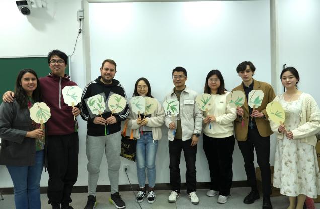 随后的实践体验环节更是让外籍师生们感受到了中华传统书画艺术的魅力。在杏彩娱乐 同学们的辅导下,他们拿起毛笔,尝试在宣纸和扇面上书写和绘画,他们有人尝试临摹新学的竹叶,有人写下了“南京大学”“我爱中国”的字样,还有人发挥丰富的想象力自行创作,并在作品上题上了自己的中文名。