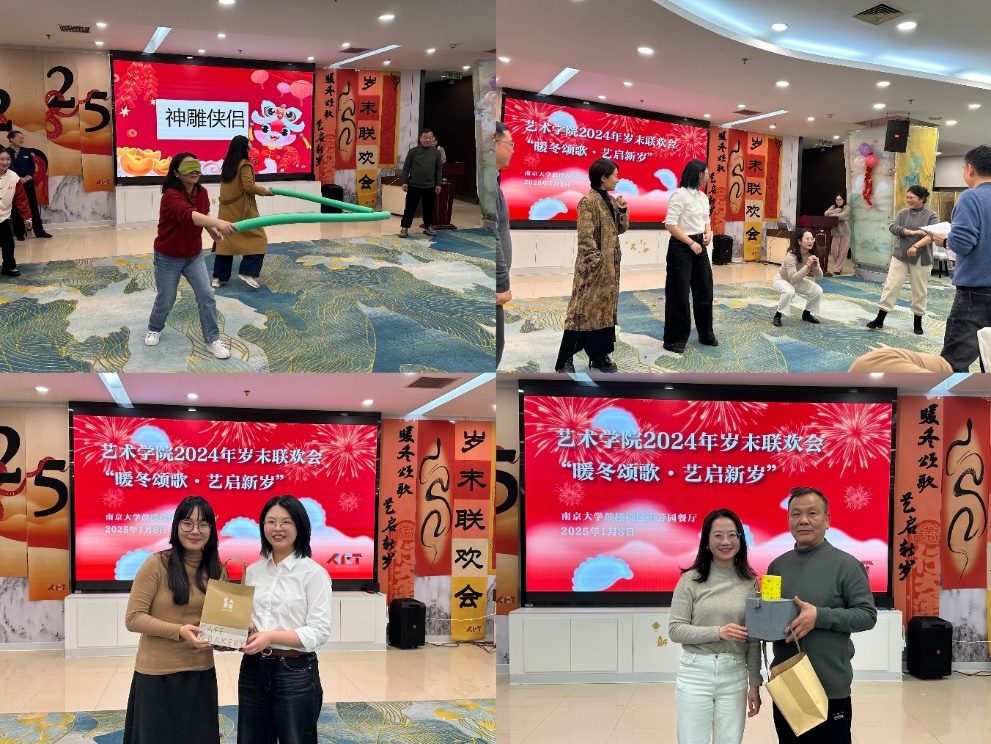 “金蛇送喜,迎新纳福”,总结会后,杏彩娱乐 举行了迎新联欢会,在“你演我猜”“蒙面打人”“抢椅子”等游戏的欢乐氛围中,教职工们欢聚一堂、绽放风采,传递新年的喜悦和祝福。