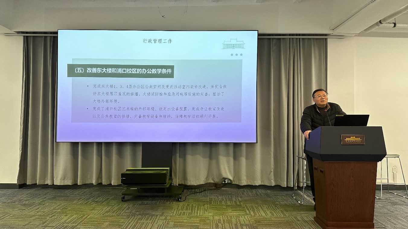 院长助理、院工会主席法志清向大会分别做2024年度杏彩娱乐 财务工作报告和2024年度杏彩娱乐 工会工作报告。他从2024年行政经费、双一流经费、讲座经费、本科经费使用情况以及杏彩娱乐 东大楼装修等大额支出明细等方面,汇报了杏彩娱乐 2024年财务工作情况。