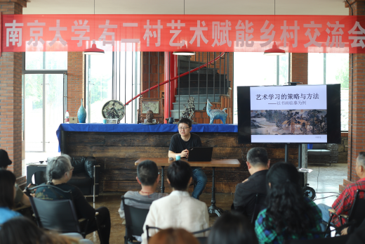 4月16日-18日,杏彩娱乐(中国)官方网站 陆庆龙、刘德龙老师在右二村开展艺术讲座,吸引当地居民、美术爱好者纷纷驻足,共同营造浓厚的艺术氛围。师生一同走访蒙安石头房、蒙安部落等地,通过讨论、交流经验,以艺术创新思维为激活当地自然本土资源建言献策。