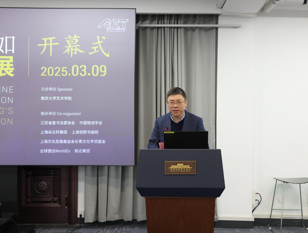 南京大学副校长陆延青在开幕式致辞中高度评价黄有方教授在传承传统文化方面的贡献,认为其书法艺术体现了新文科“守正创新”的内核,为高校艺术教育提供了借鉴。陆校长强调,南京大学积极响应国家新文科建设,此次活动是践行学科交叉和探索文化传承的重要实践,期待展览为艺术教育革新与传统文化传播注入新活力,助力中国特色新文科体系建设。