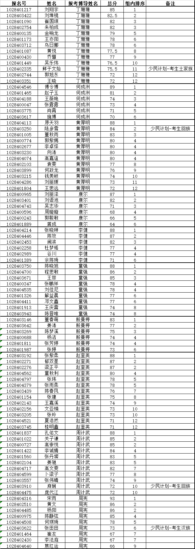 通过人数为报考该导师总人数的70%(如遇小数,四舍五入)。现将资格审核成绩和结果公布如下: