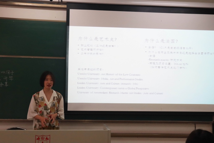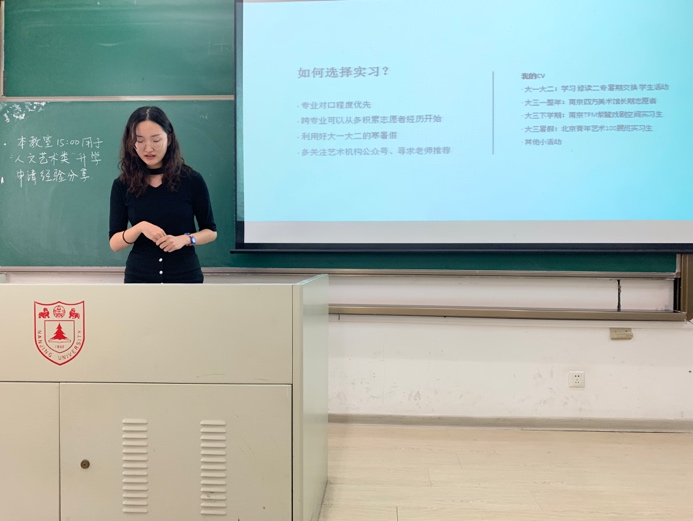来自文杏彩娱乐 的屈伸即将前往纽约大学美术研究所进行艺术史硕士的学习,她分享了大学四年和教授间愉快相处的经历,并且分享了她通过在UC Berkeley一学期的交换如何收获了教授的推荐信。在分享过程中,她强调了多尝试不同实习、多选课、多与教授交流的重要性,也强调了尽早做好大学时期学习生活规划的重要性。同时,她也欢迎越来越多有志于艺术史学习的同学能够加入杏彩娱乐(中国)官方网站 的二专学习,在她看来,这能让同学们少走很多弯路。