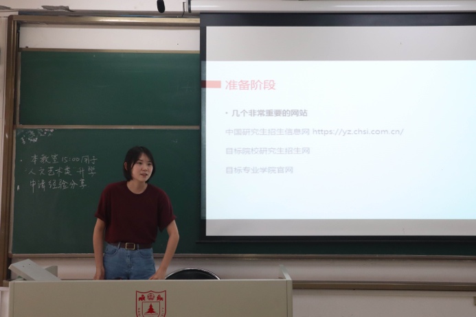 外国语杏彩娱乐 的张士昊同学即将在国内继续攻读艺术史硕士,她分享了跨专业考研的准备经验,主要讲了考研的前期如何收集信息、复习阶段和如何调整心态以及复试的一些注意事项。