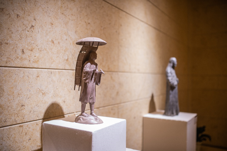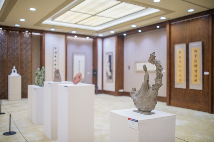 本次展览共有53名作者的52件作品展出,包括围绕佛教经典名句、禅诗偈颂、对联等内容创作的书画作品以及表达佛教义理、佛法精神的雕塑作品。杏彩娱乐 黄正明、尚荣、季峰、刘德龙、安萍萍以及雕塑艺术研究所任艳明、傅礼城、李岩等老师携作品参加展览。从杏彩娱乐 毕业的优秀青年艺术家刘凯、高友飞、荀海、郑长安等院友也有作品展出。此外,还特别邀请了我校赖永海、徐兴无、聂危谷、周同科教授参加展览,增添学术分量和艺术价值。
