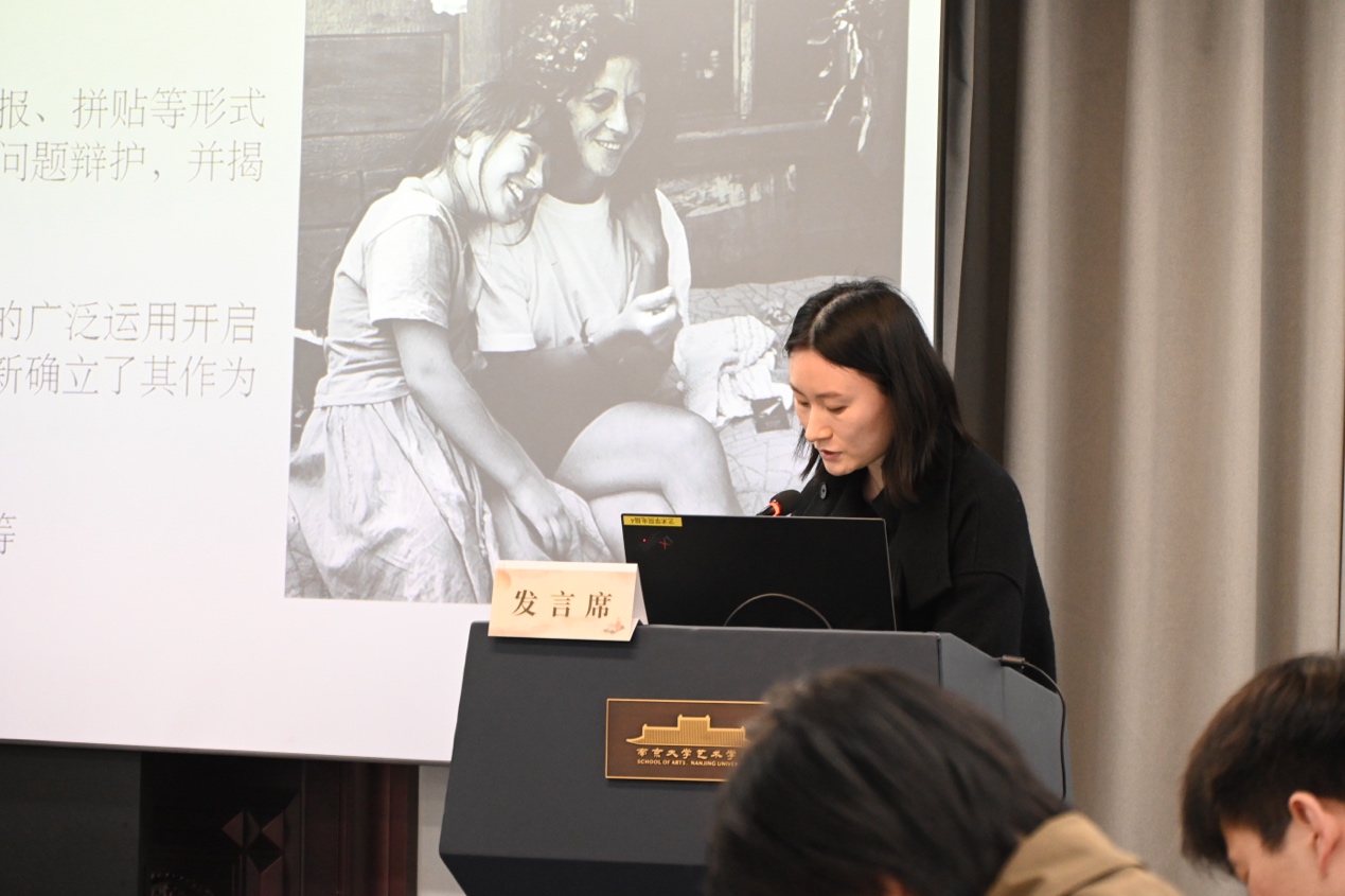 下午第一场“性别与经验”议题中,王艺霏以《创作贞女与贞女创作:姜桂〈栢舟图〉及其题跋论述》为题,结合图像与题跋文本,探讨清代贞女如何在男性书写与自我创作之间协商其主体位置;褚纪亭在《陪伴即使命:欧洲15—16世纪手抄本插图中的宫廷侍女与命妇》中,通过中世纪手抄本图像重审女性“陪伴”劳动在宫廷权力结构中的情感与政治意义;董晏如则以《土地之上,集体之感:弗朗基·拉弗尔斯的中国乡村妇女劳动影像(1984—1986)》为例,分析纪实影像如何记录并建构女性集体劳动中的情感经验与跨文化记忆。本场汇报由钱慧主持,潘中华、陆蓓容评议,围绕性别视角下经验的可见性、情绪的书写与描绘和姐妹情谊等话题展开。