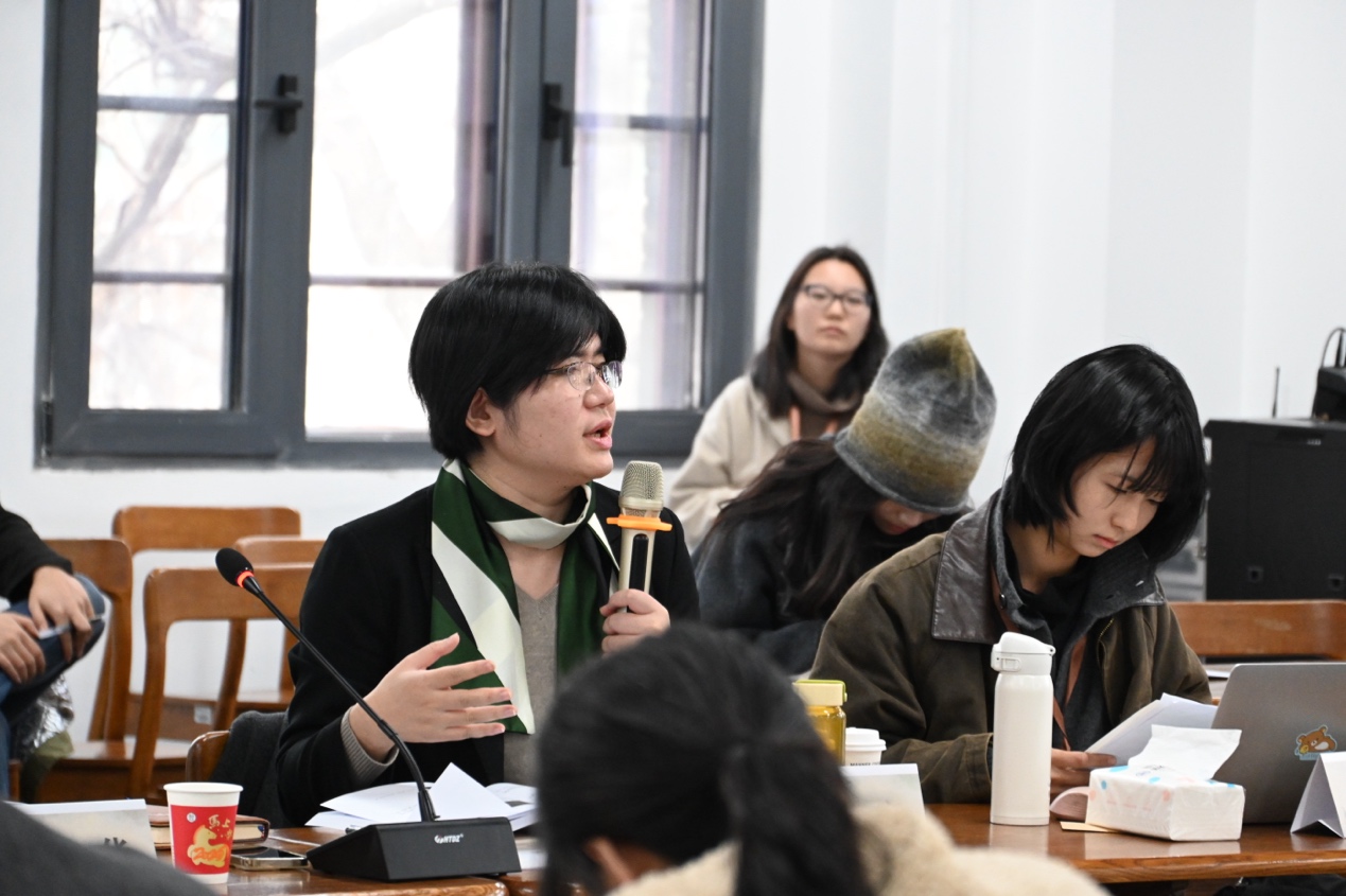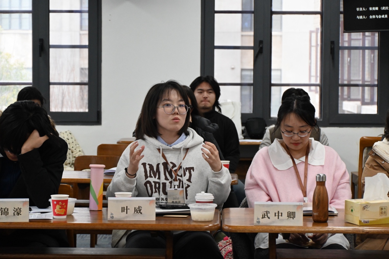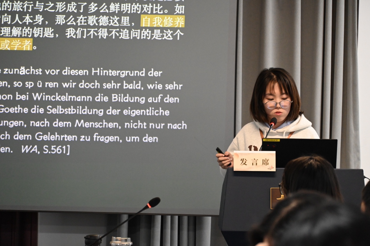 最后一场题为“自我与书写”,叶威以《寻找“Arcadia”:歌德〈意大利游记〉的自我修养主题》为题,探讨旅行书写如何作为一种自我修养实践,重塑主体的感知结构与精神秩序;熊鹤婷在《在行动与行动之间——有关阿比·瓦尔堡》中,从瓦尔堡的思想与研究实践出发,分析学术行动中张力、克制与主体位置的复杂关系;丁茜菡则通过《从“塔”的坍圮到“豆彩碗”的发掘——40年代末50年代初沈从文精神困境中的自我找寻》,细致梳理沈从文在历史转折期如何借助书写与物的经验完成自我重建。本场汇报由孙雅涵主持,熊鹤婷、叶威、叶康宁分别担任评议,从学者的性格以及学术生活中的寻找、崩塌与重建等方面展开交流,现场气氛活跃,工作坊的主题也因此得以升华。