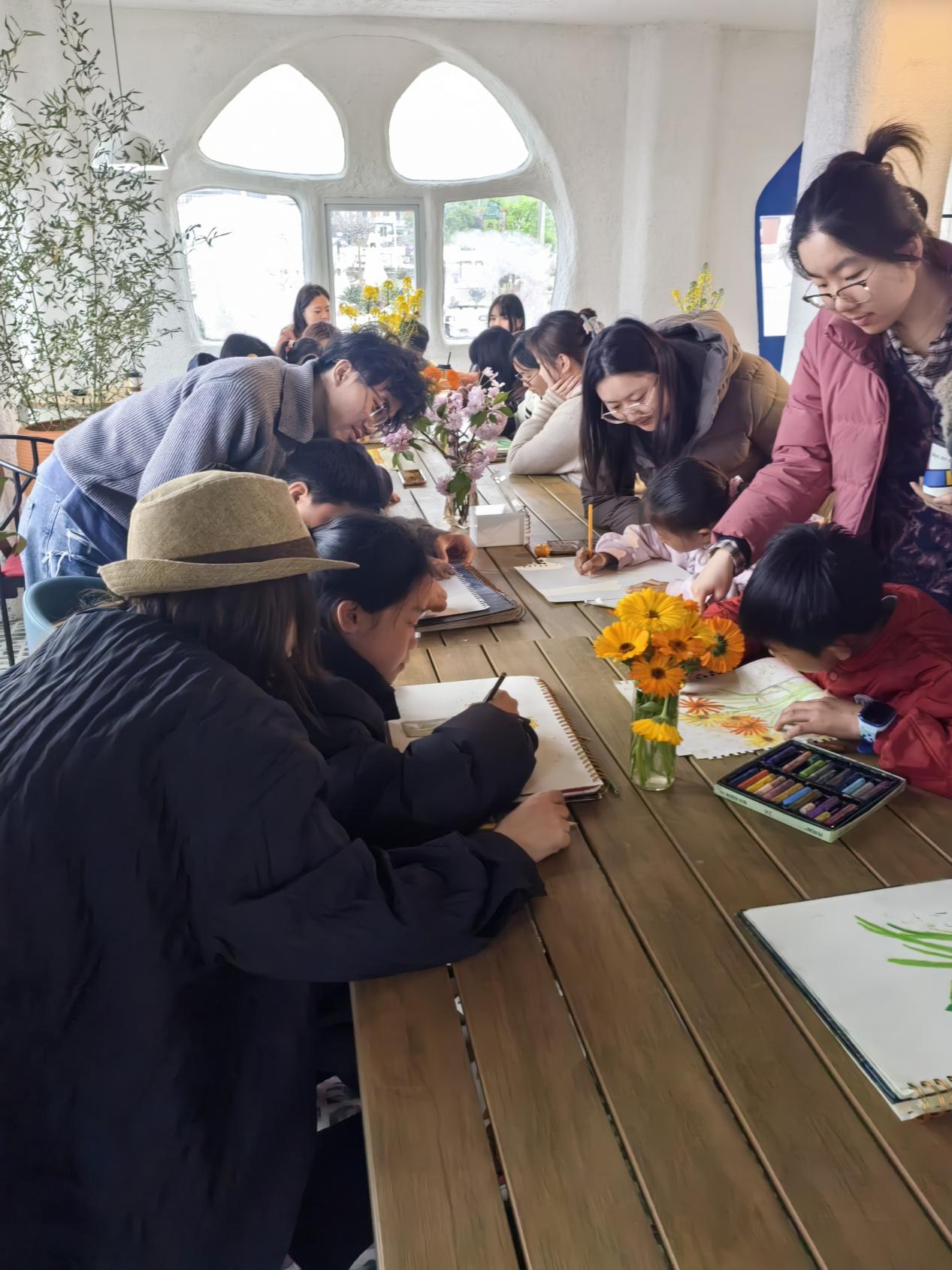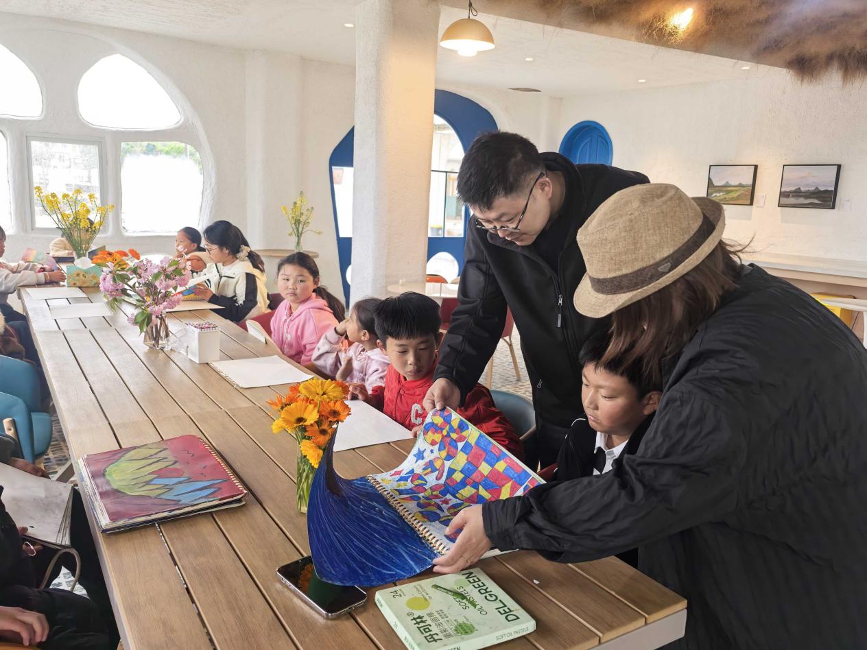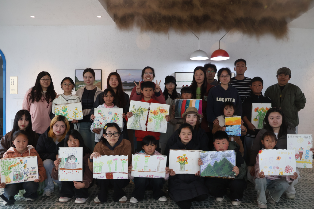 同学们精心准备了油画棒和彩铅画两种绘画工具,为孩子们设计了花卉和风景两个主题的绘画课程。在教学过程中,他们不仅传授绘画技巧,更注重培养孩子们的创造力和审美能力。通过鼓励孩子们大胆尝试、自由表达,让孩子们在绘画中领略艺术的魅力与乐趣。这种美育赋能的方式,极大地丰富了孩子们的课余生活,激发了他们对艺术的兴趣与热爱,为乡村教育注入了新的活力。在同学们的耐心指导下,孩子们用画笔描绘出一幅幅充满童趣与创意的作品,每一笔都饱含着他们对艺术的热爱和对生活的美好向往。