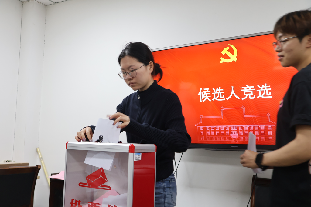会议的第三环节是根据《中国共产党章程》《中国共产党基层组织选举工作条例》等文件规定和选举工作程序,以无记名投票、差额选举方式,秉持公平、公正、公开的原则,选举产生了新一届党支部委员会。与会党员通过举手表决的方式,通过了大会选举办法、新一届支部委员会委员候选人名单、大会监计票人名单。大会最终确定以无记名投票的方式差额选举产生新一届支部委员会。在校、院党委的领导下,新一届支部委员将与支部成员一起巩固优秀成果,进一步强化使命担当,认真履职尽责,推动支部党建工作再上新台阶。