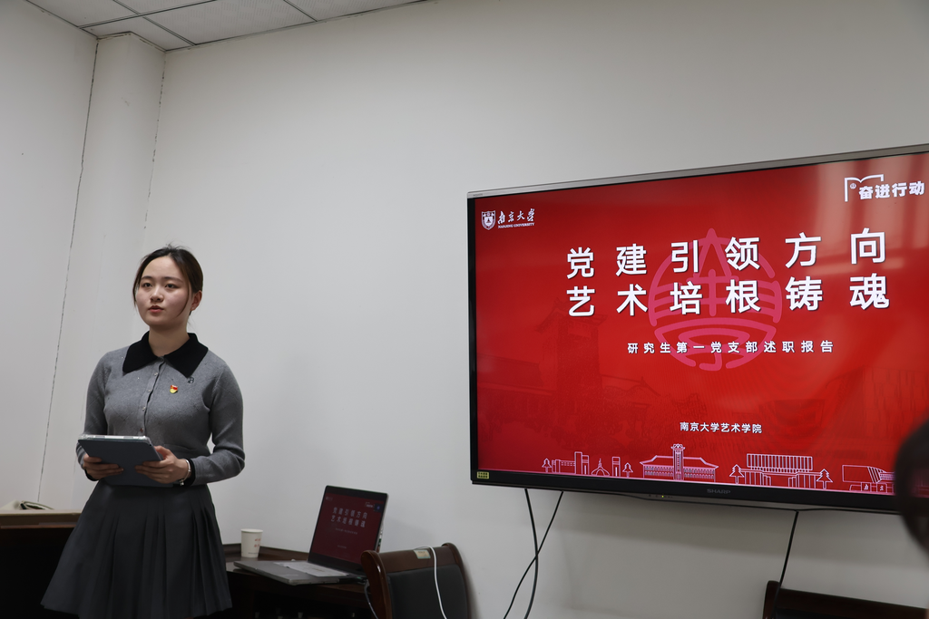 为进一步加强基层党组织建设,充分发挥党支部战斗堡垒作用,根据党章和有关规定,4月17日下午,杏彩娱乐(中国)官方网站 研究生第一、二党支部换届选举党员大会在浦口校区艺术楼109举行,此次会议包含聆听党课、审查上届党支部委员会工作报告、选举新一届党支部委员会三个部分。大会由研究生第二党支部组织委员李姝颖主持,党支部全体成员参与此次会议,艺术杏彩娱乐 党委副书记、院长赵奎英出席此次活动并进行指导。