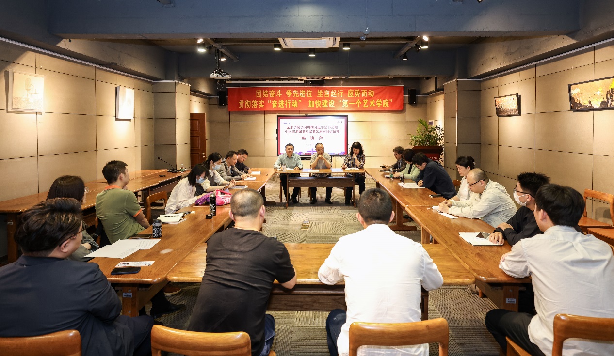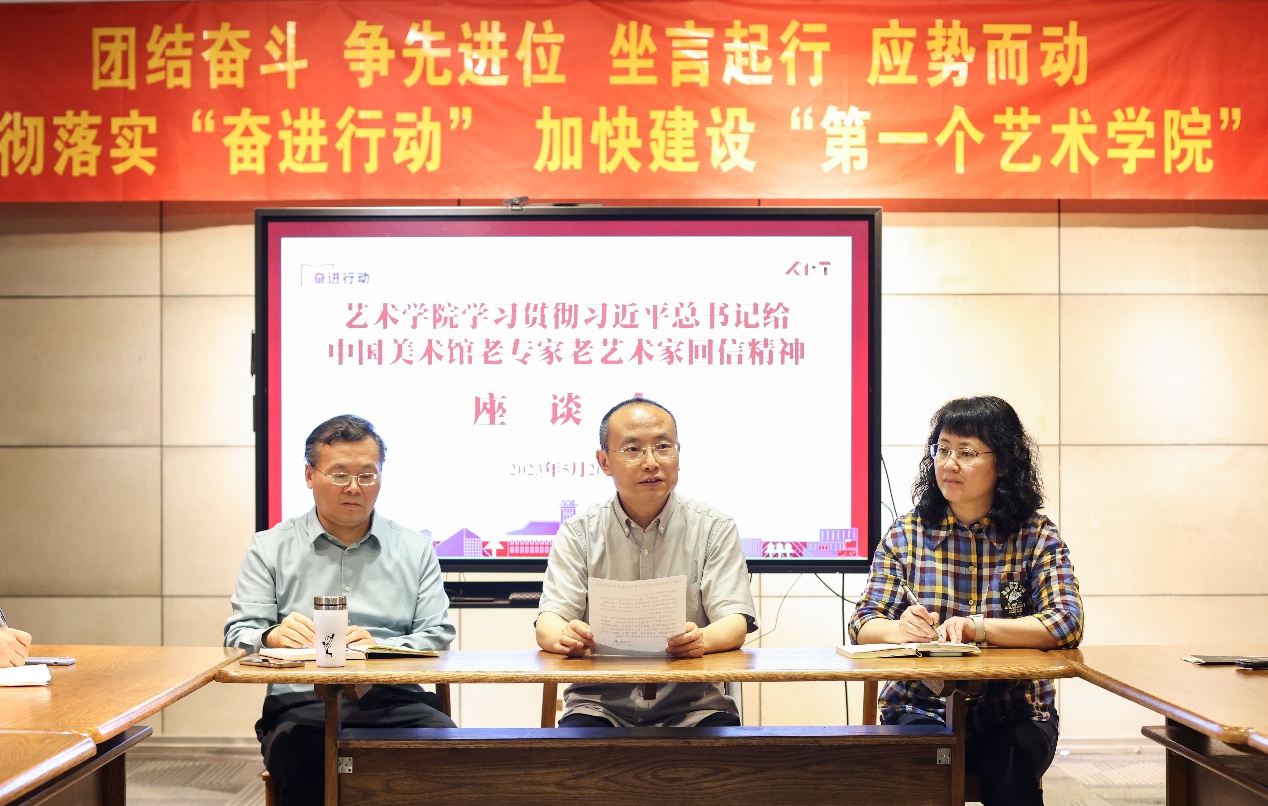 5月26日下午,杏彩娱乐 召开学习贯彻“习近平总给中国美术馆的老专家老艺术家的回信”座谈会,邀请中国美术馆展览部主任邵晓峰教授与杏彩娱乐 领导班子成员、师生代表座谈交流。
