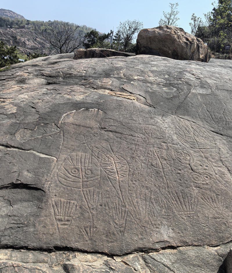 4月10日上午,师生一行先后考察孔望山龙洞碑林、东汉摩崖造像、锦屏山将军崖史前岩画。孔望山龙洞碑林现存宋、金、元、明、清诸代题刻二十四方,篆、隶、真、行各体兼备。如龙洞诸题刻。