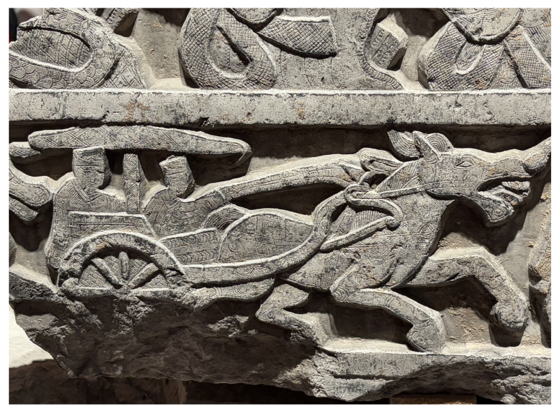 图(2)《车马图》为高浮雕与凹面线刻手法相结合