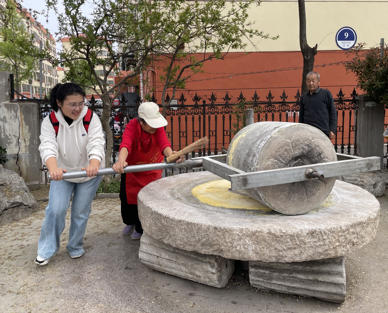 图(9)老师们急不可待体验沂蒙红色石碾