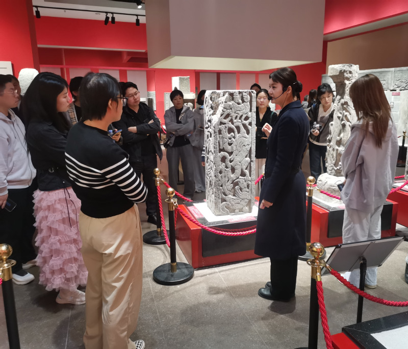 4月11日上午,完成连云港站考察任务的师生考察团一行,驱车抵达临沂,开始临沂——曲阜站的访学考察。师生一行首先参观临沂市博物馆藏临沂汉墓出土汉画像石雕专题陈展。