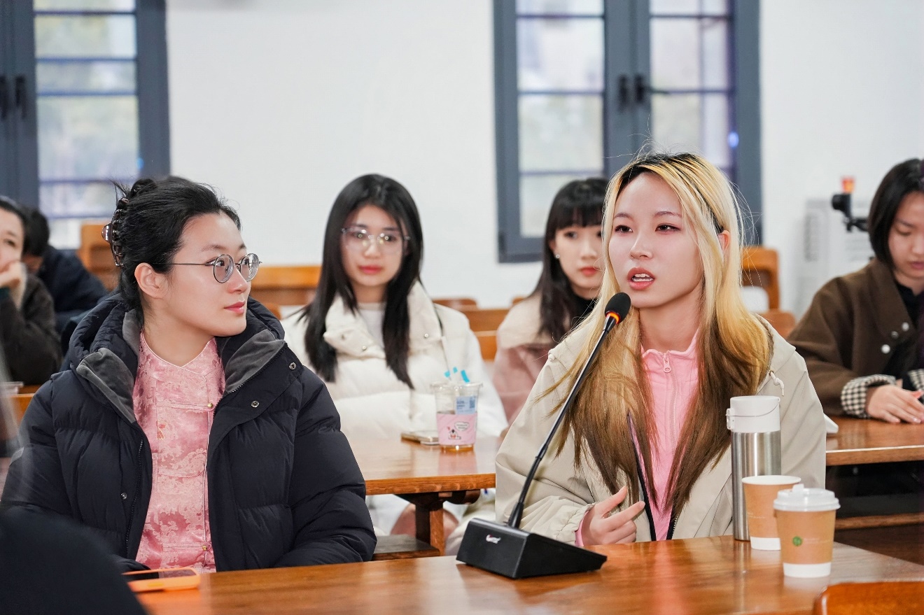 参展艺术家代表、国家一级美术师、江苏省国画院副院长、杏彩娱乐(中国)官方网站 特聘教授喻慧老师动情发言。她从自身的成长感悟出发,回顾了百年来女性从束腰裹脚到同工同酬、参政议政的艰辛历程,感恩这个时代赋予女性的自由与尊严。她感谢男性同胞的尊重与包容,更感恩南京大学这座首屈一指的高等学府为女性艺术家提供的高层次展示平台。喻慧表示,新时代女性不仅要享受时代的馈赠,更要肩负起责任,以自由独立的姿态,做眼中有爱、心中有光的自己,让女性力量在时代中绽放异彩。