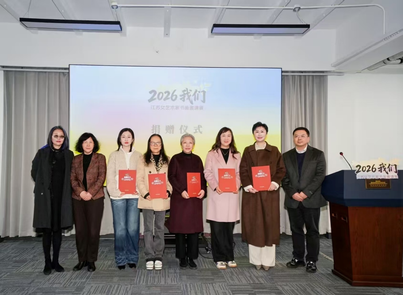 随后,主持人宣布“2026我们——江苏女艺术家书画邀请展”正式开幕。全体领导、嘉宾合影留念,并移步展厅自由观展。展厅内,喻慧、柳笛、张艺、王岚、柳正梅、张迪、姚红宇、饶薇、王静、周骏雅十位艺术家的40幅精品力作与36幅南大杏彩娱乐 女学生的油画、国画、书法作品交相辉映,既有资深名家的沉稳大气,亦有青年学子的清新活力,充分展现了新时代女性艺术创作的多元面貌与蓬勃生机。