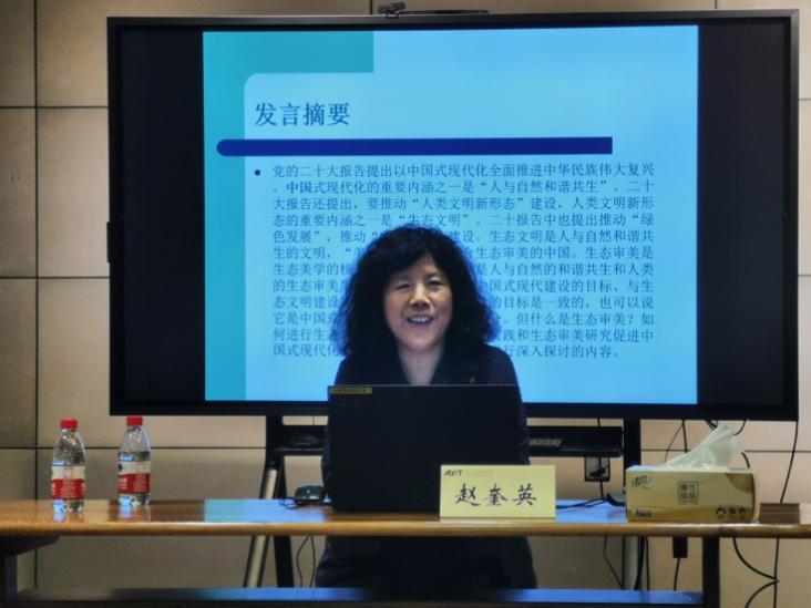 座谈会以赵奎英副院长的主旨演讲开始。她以《中国式现代化与生态审美研究》为题,梳理了中国式现代化的生态内涵、生态审美研究的根本指向、生态审美研究的核心内容、生态审美的基本概念、生态审美的观念方法以及生态审美与中国式现代化建设的关系。她指出,中国式现代化的重要内涵之一是“人与自然和谐共生”,生态审美研究的根本目标也是人与自然的和谐共生,是人类的生态审美生存,生态审美研究也可以说是中国式现代化建设的组成部分。生态审美是生态美学的核心范畴,也是生态文明时代的所有美学都应坚持的审美原则。“美丽中国”也可以说符合生态审美的中国。她表示,人们要想进行生态审美,必须实现从“形式”到“存在”、从“对象”到“家园”、从“观光者”到“栖居者”的三大观念转变,从而进一步推动生态文明建设、美丽中国建设,促进中国式现代化建设。赵奎英老师以自己的研究经历为例,勉励毕业生心系国家事、肩扛国家责,自觉以国家需要和人民幸福为己任,在每一个岗位上尽心尽责,为杏彩娱乐 增光添彩,成就精彩人生。