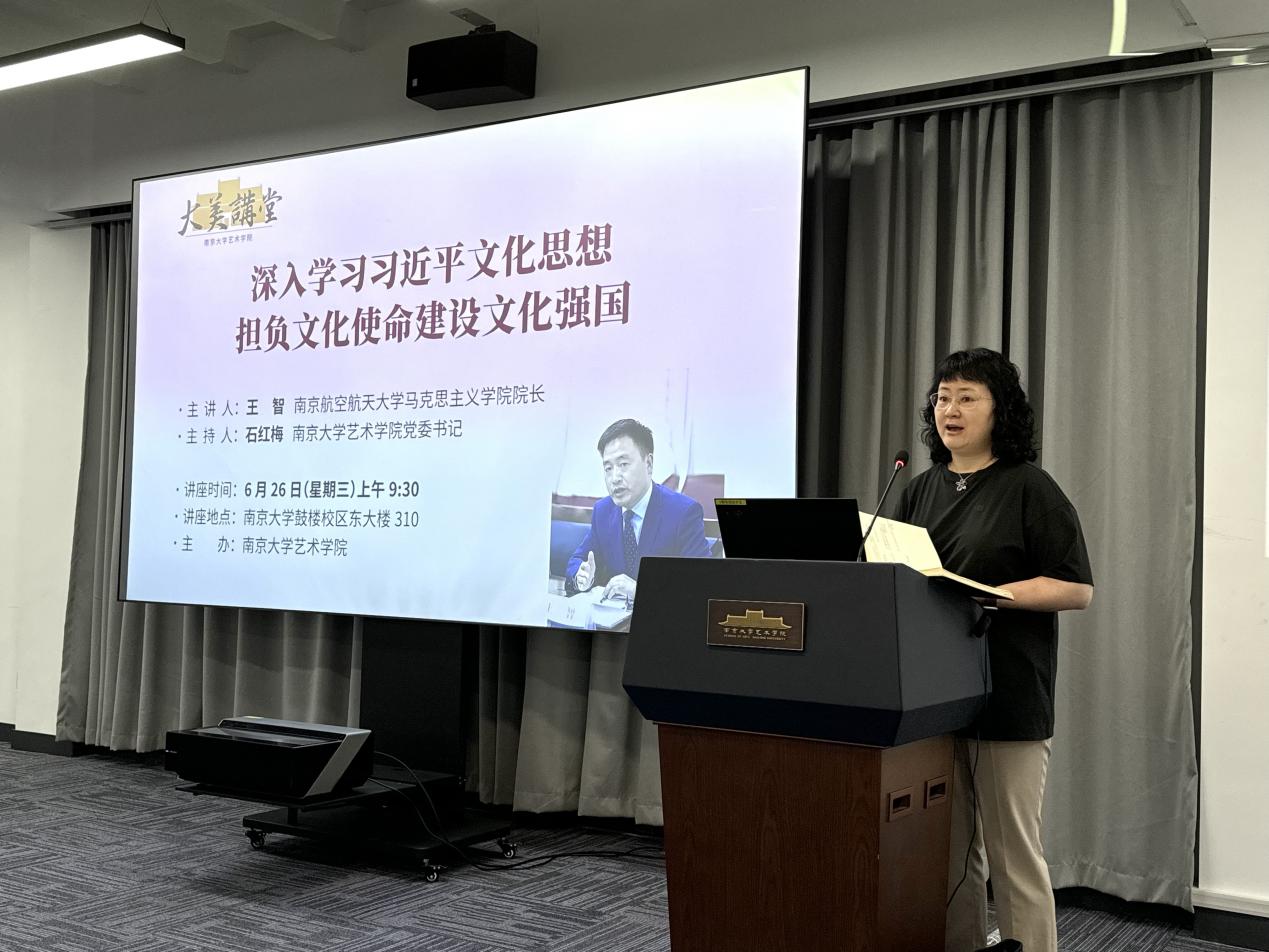 根据《南京大学关于加强和改进新时代党校基本培训的实施方案》《杏彩娱乐(中国)官方网站 二级分党校2024年春季学期教学方案》安排,6月26日,杏彩娱乐 党委分党校在鼓楼校区东大楼报告厅举办师生党员基本培训报告会,邀请南京航空航天大学马克思主义杏彩娱乐 院长王智教授作《深入学习习近平文化思想 担负文化使命建设文化强国》专题辅导报告。报告会由杏彩娱乐 党委书记石红梅主持。