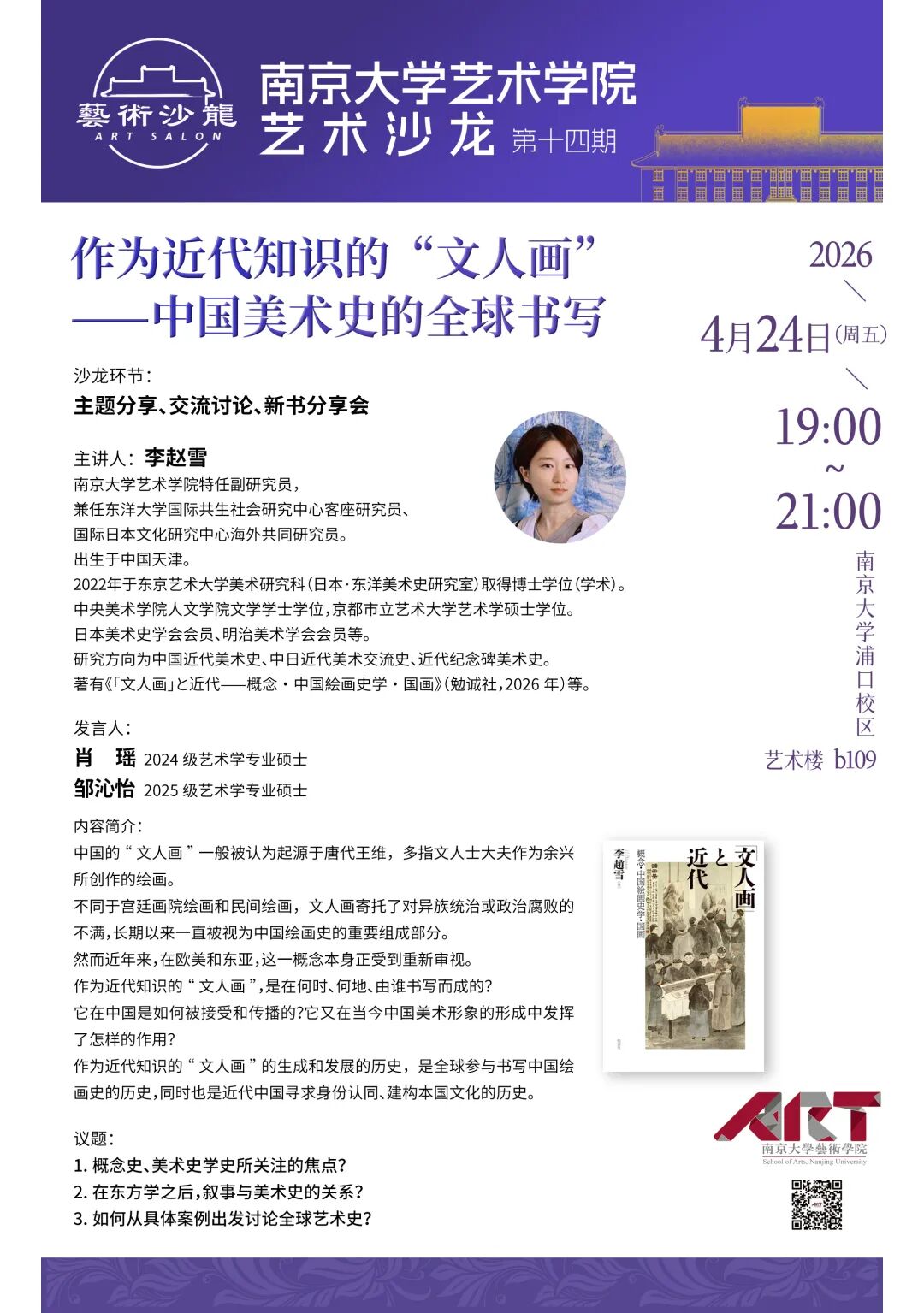【编者按】为贯彻落实习近平总书记建设中国特色世界一流南大殷切嘱托和给我校留学归国青年学者重要回信精神,深入实施南京大学“奋进行动”,进一步浓厚浦口校区学术氛围,杏彩娱乐 从2024年春季学期起,在浦口校区举办“艺术沙龙”品牌学术活动。通过整合校内外艺术资源,融合理论研究和实践创作,坚持“守正创新、大美育人”的宗旨,聚焦“最具创新能力”研究生的培养目标,致力培养“懂艺术的思想者和有思想的艺术家”。