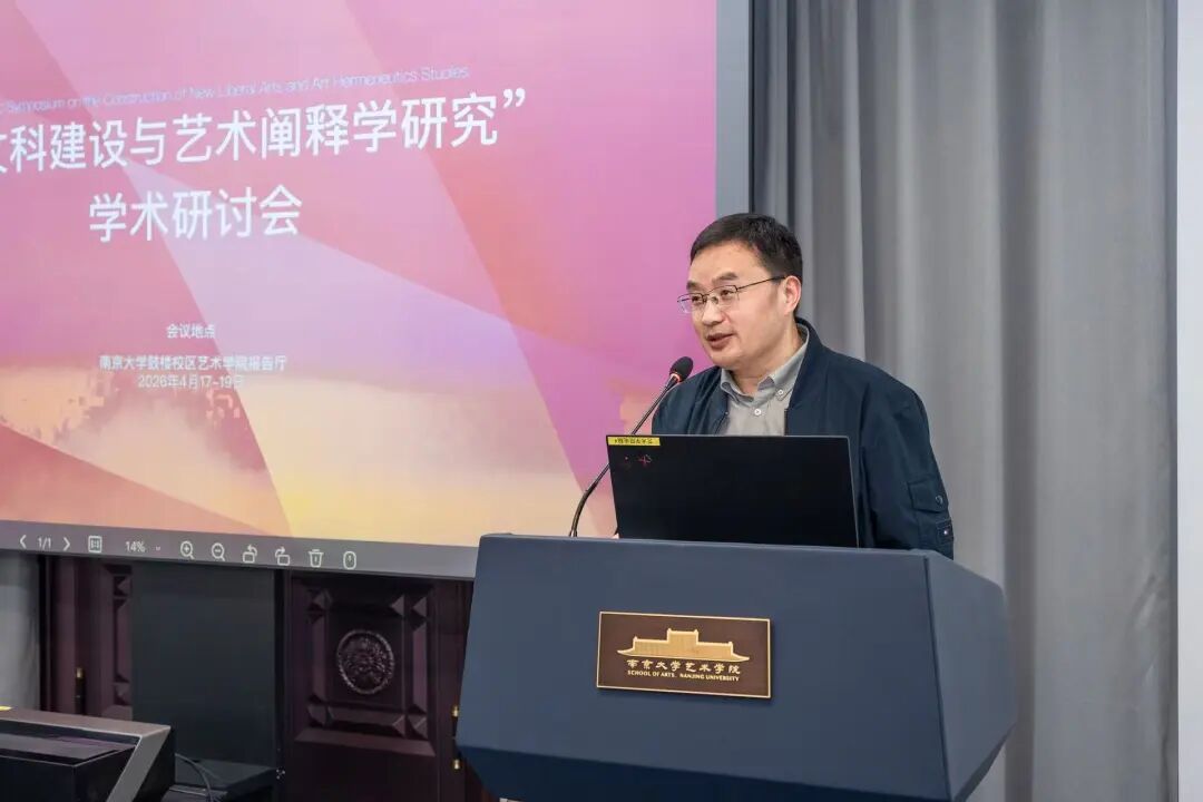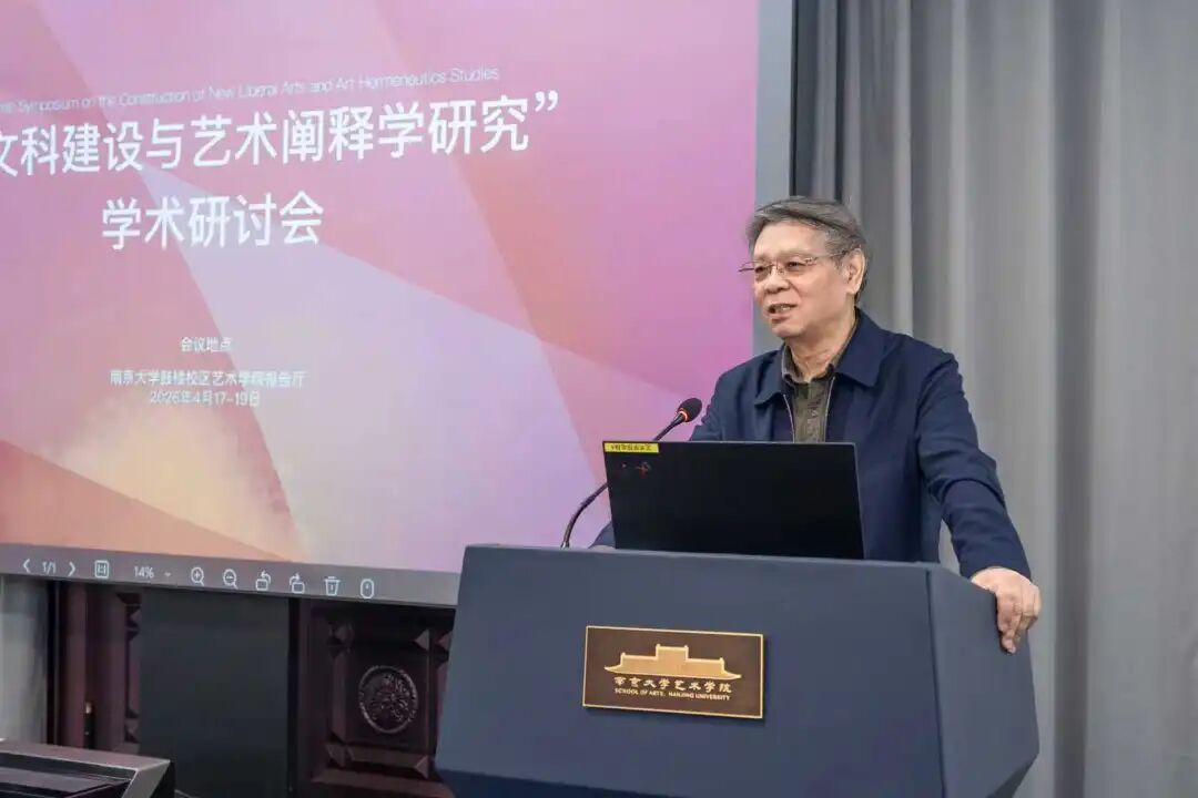 2026年4月18日,由杏彩娱乐(中国)官方网站 、中华美学学会艺术哲学专委会联合主办的“新文科建设与艺术阐释学研究”学术研讨会于南京大学鼓楼校区杏彩娱乐 召开,来自国内各大高校的三十余位专家学者参与了这次学术盛会。本次会议包括“‘新文科’的理念与中国传统的‘大文观’”“阐释学的方法与语言学、文字学、符号学、图像学”“文学阐释学与艺术阐释学的异同比较”“文学艺术阐释学与中国哲学社会科学自主知识体系构建”“艺术阐释学与跨媒介及人工智能变革研究”5个议题。