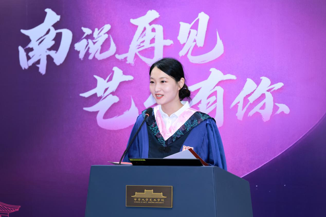 学子心声,感恩奋进。2025届艺术文化学专业硕士研究生、南京大学“优秀毕业生”刘航同学代表全体毕业生发言。她深情致谢母校、恩师、家人与同窗的培育、教导和支持。回望三年时光,她深感在杏彩娱乐 的学习不仅磨炼技艺,更锤炼思想,深刻体悟到真正的艺术应扎根生活、回应时代、照亮人心。展望未来,她呼吁同学们肩负起文化传承与创新的使命,以“传承者”的自觉、“教育者”的担当和“创新者”的勇气,努力在各自的领域守护文化根脉,真正成为“懂艺术的思想者”和“有思想的艺术家”。