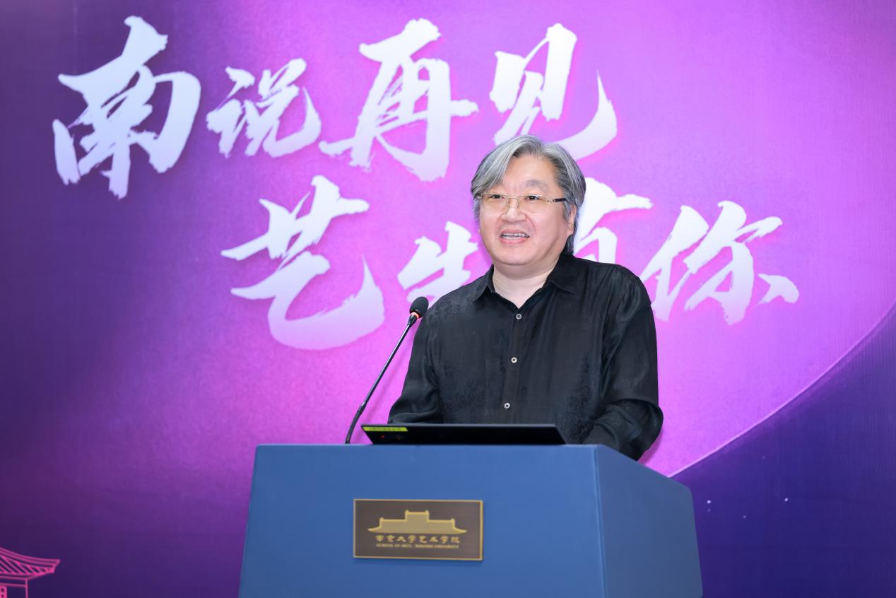 嘉宾寄语,情深意长。南京大学兼职教授、全国教育书画协会名誉会长兼全国高等书法教育分会会长言恭达先生,南京大学硕士研究生行业导师、江苏省政府参事、江苏省书法家协会副主席刘灿铭先生,以及江苏省文化馆党总支书记、馆长赵彦国先生作为嘉宾代表发表致辞,向毕业生致以热烈祝贺和美好祝愿。言恭达先生勉励毕业生,要铸造成长力,开拓创造力,并坚定文化自信。刘灿铭先生结合自身跨界经历,倡导毕业生尝试跨界融合,坚持终身学习,注重德艺双修等等。赵彦国先生分享了与南大杏彩娱乐