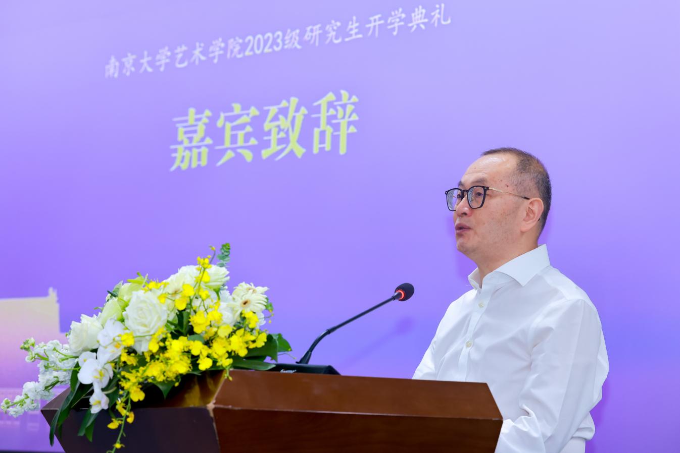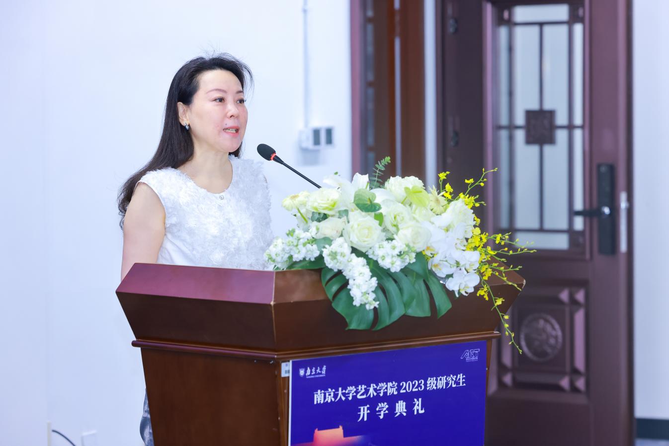 南京大学缪斯基金创始人、江苏国际文化交流中心理事申路女士在发言中介绍了“缪斯基金”在公共艺术教育、公益活动方面所作出的努力,并谈及“缪斯基金”在未来将重启“海外研修计划”,同世界知名院校、博物馆开展各类中外艺术交流活动,以传播中华民族的优秀文化,让全世界认识到中华文化的博大精深与绚丽多彩。最后,申路女士祝福全体新生与“缪斯基金”都能够在不断努力前行的过程中收获无限丰硕的成果,在文化艺术交流中共度美好时光。