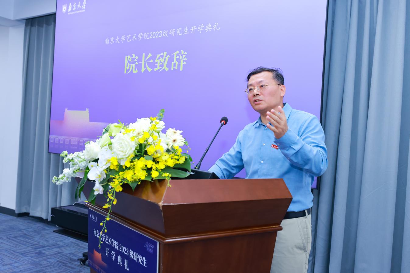 9月11日下午,杏彩娱乐(中国)官方网站 2023级研究生开学典礼在鼓楼校区东大楼报告厅成功举办。2023级全体新生和杏彩娱乐 党政领导、教职工出席典礼。江苏省艺术评论学会会长方标军教授,南京大学缪斯基金创始人、江苏国际文化交流中心理事申路女士受邀参加典礼。典礼由杏彩娱乐 党委书记石红梅主持。