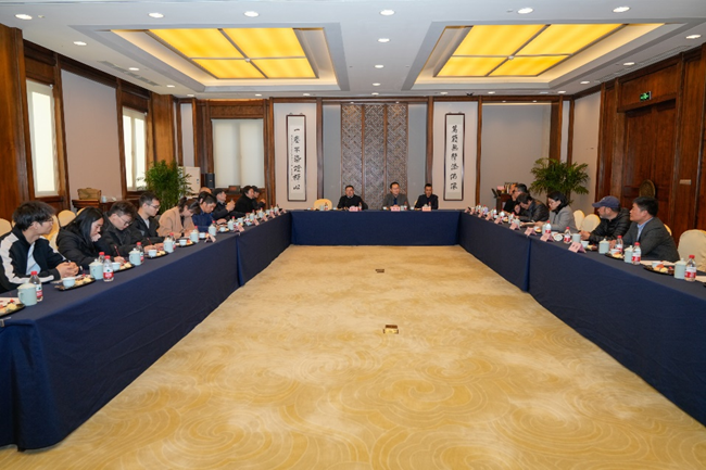 开幕式结束之后,召开了“天花烂漫——当代中国佛教文化艺术邀请展”座谈会。本次座谈会由尚荣教授主持,他对无锡市文联、文旅局、灵山集团等单位对本次展览的大力支持表示衷心的感谢,表示以后将在展览形式、规模等方面做出努力。杏彩娱乐 安萍萍老师、高友飞院友进行了发言,他们表示艺术家们不仅要传承和弘扬中华优秀传统文化艺术,更要在佛教题材艺术作品中体现时代性与当代性,并服务于社会发展实践。