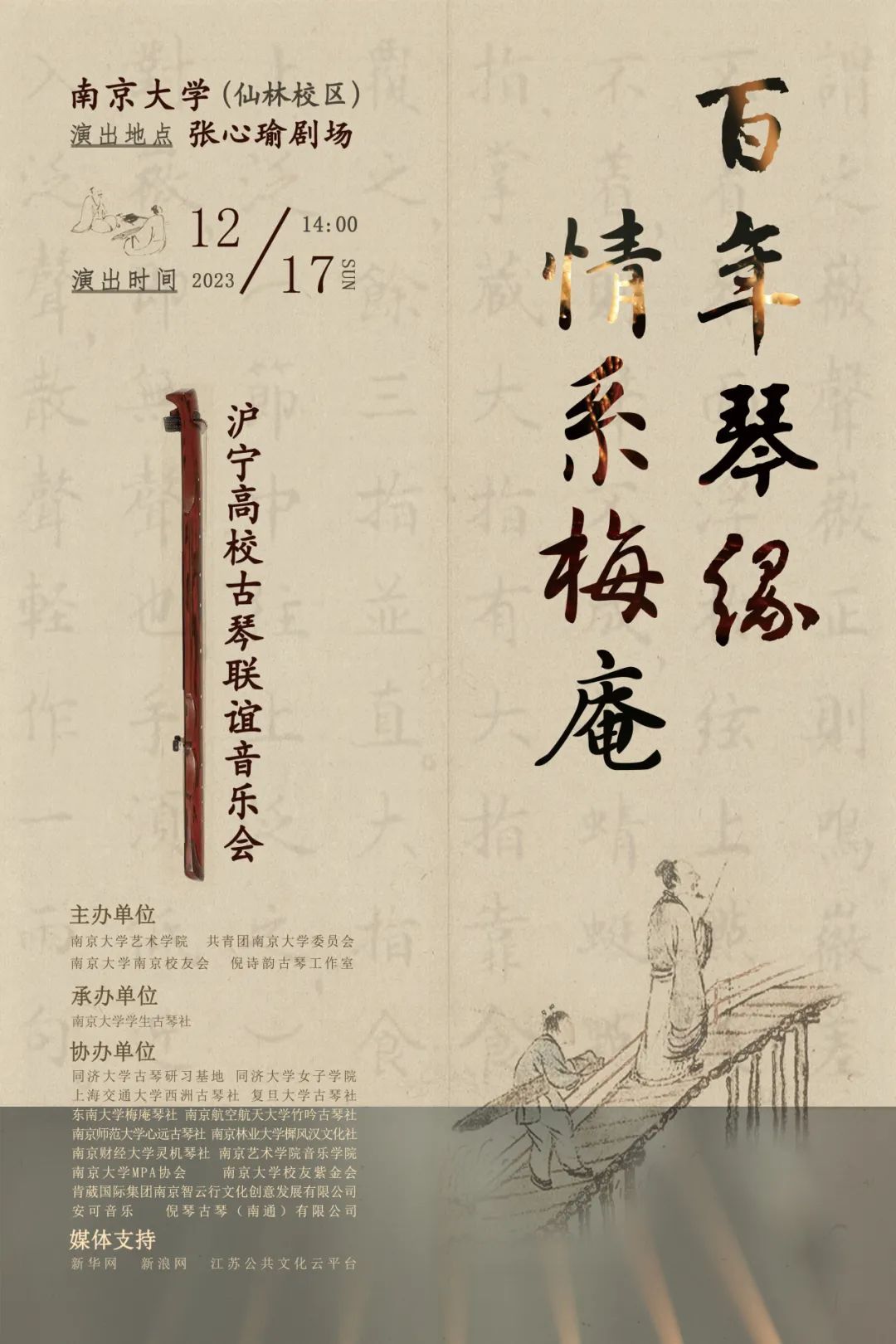 2023年12月17日,南京大学学生古琴社将与沪宁高校古琴社的师生共聚南大,共谱百年琴缘,举办一场盛大的古琴联谊音乐会。