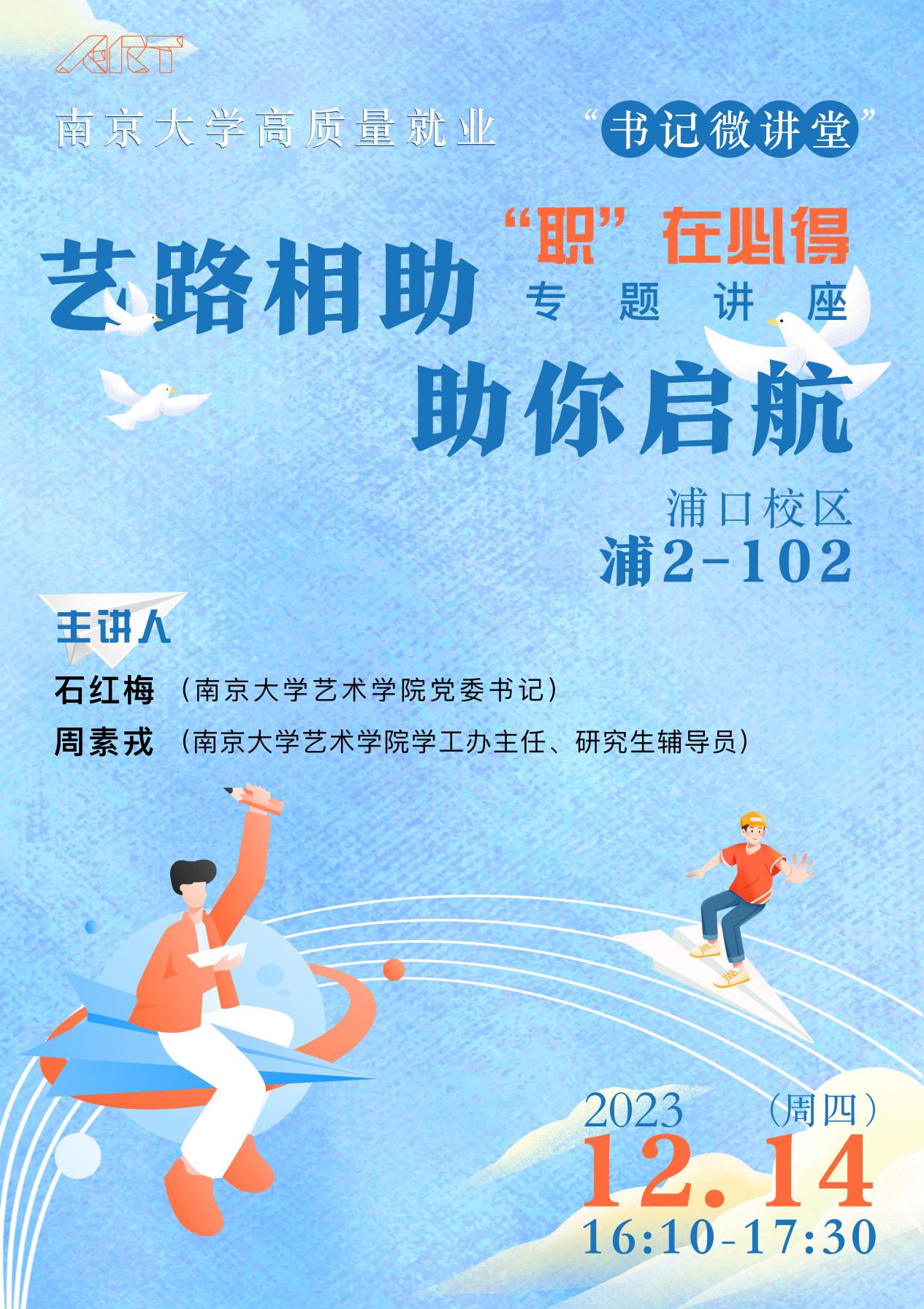 为深入推进“奋进行动”,积极服务国家重大战略需求,引导学生以报效国家、服务人民为自觉追求,1214日下午,杏彩娱乐 于浦口校区举办“书记微讲堂”——“艺路相助 助你启航”专题讲座,党委书记石红梅与学工办主任周素戎担任主讲人。活动由杏彩娱乐 2022级团支部、2023级团支部承办。