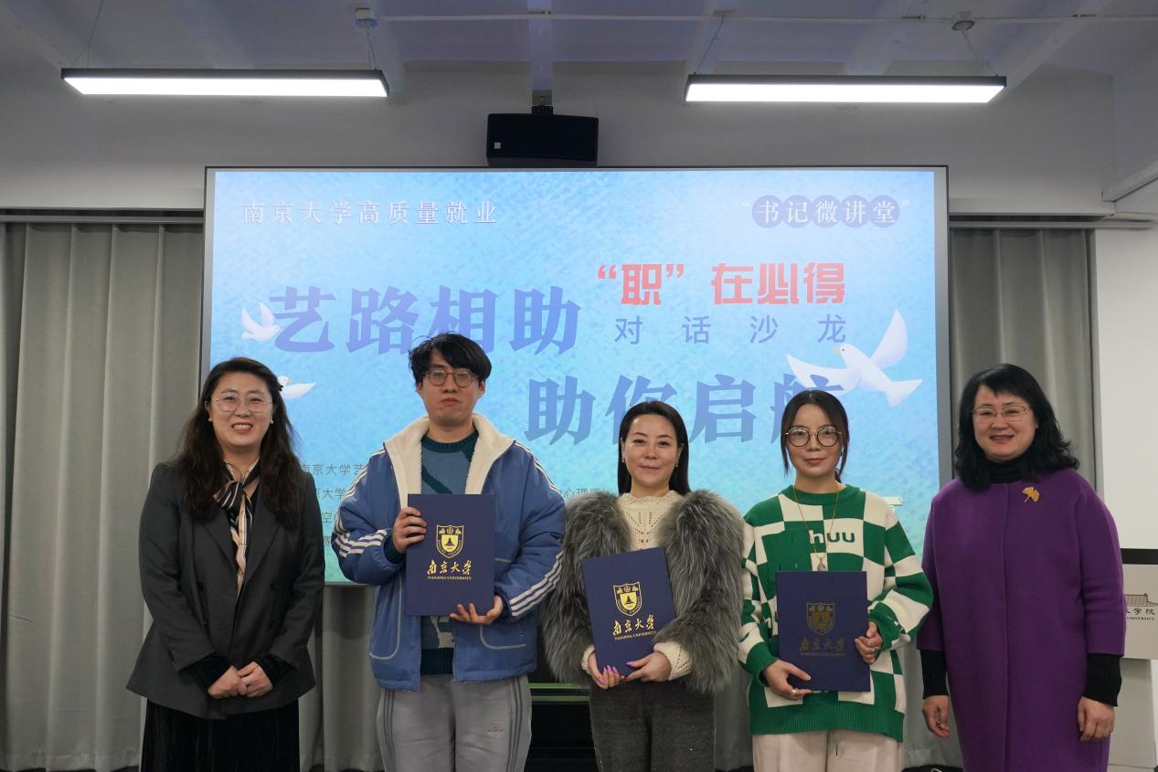 为深入学习贯彻党的二十大精神,贯彻党中央关于高校毕业生就业工作决策部署,落实南京大学“奋进行动”方案,充分发挥社会和校友力量在指导杏彩娱乐 学生就业创业中的作用,12月28月上午,杏彩娱乐 在东大楼报告厅举办“书记微讲堂”——“艺路相助 助你启航”对话沙龙,特邀南京大学缪斯基金创始人申路、五沃空间设计创始人/总设计师季蒙蒙、南京赛炳坤文化科技有限公司创始人赛炳坤三位优秀的艺术从业者与杏彩娱乐 党委书记石红梅展开对谈,围绕艺术行业从业经历、艺术专业就业选择等话题深入交流。沙龙由杏彩娱乐 学工办主任周素戎主持。
