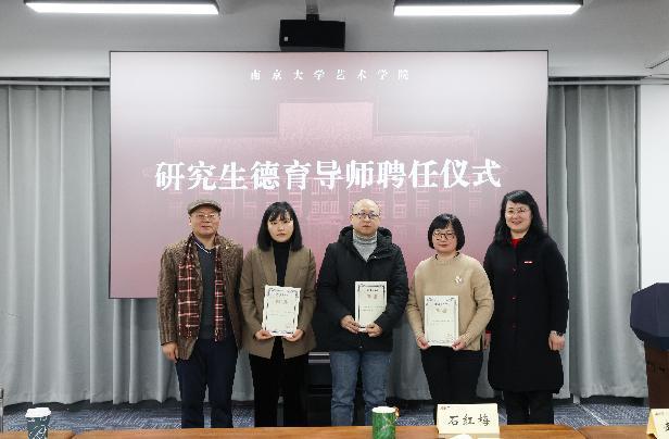 会议期间还举行了研究生德育导师聘任仪式,由赵奎英副院长宣读《南京大学研究生院关于聘用 2024 年度南京大学研究生德育导师的通知》,何成洲院长和石红梅书记为李丹、周计武、尚莲霞、高薪四位德育导师颁发聘书。